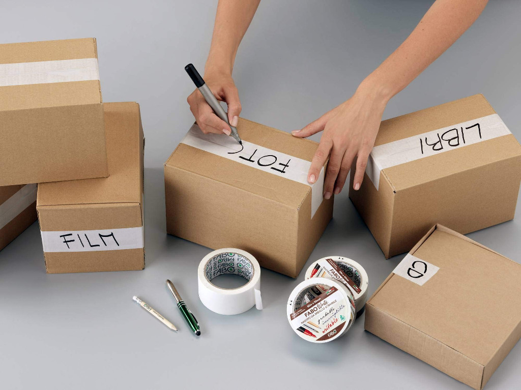 FABO Write è lo speciale nastro da imballo scrivibile per annotare il contenuto delle scatole direttamente sul nastro e aiuta a rendere traslochi, cambi armadio e l'archiviazione più semplice e perfettamente organizzata. L'utilizzo del mastro FABO Write è semplice come scrivere una nota, si applica direttamente sulle confezioni da chiudere e può poi essere scritto con penne, matite e pennarelli permanenti. FABO Write è un prodotto privo di solventi nocivi per organizzare e archiviare gli scatoloni in maniera intelligente ed ecofriendly, la scrittura dei contenuti sul nastro permette infatti di riutilizzare i cartoni.