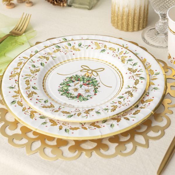 Piatti in cartoncino Magia del Natale, bianco e oro per una tavola elegante e raffinata