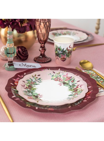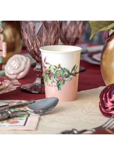 Bicchieri in cartoncino Cherry Christmas, con toni rosso ciliegia e rosa cipria per un'ottima alternativa al classico rosso
