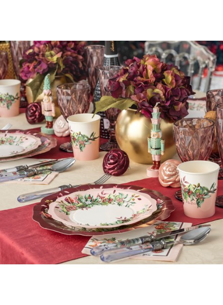 Tovaglioli in carta Cherry Christmas, con toni rosso ciliegia e rosa cipria per un'ottima alternativa al classico rosso