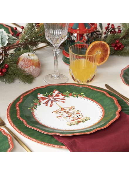 Piatti in cartoncino verde, con protagonista una splendida giostra centrale dai colori vintage, renderà la tua tavola allegra e gioiosa